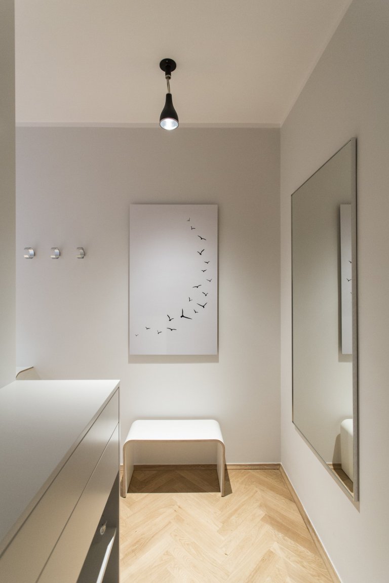 Malá garsonka v nově rekonstruovaném secesním domě na Letné je zázemím pro úspěšného businessmana, při jeho cestách do hlavního města.