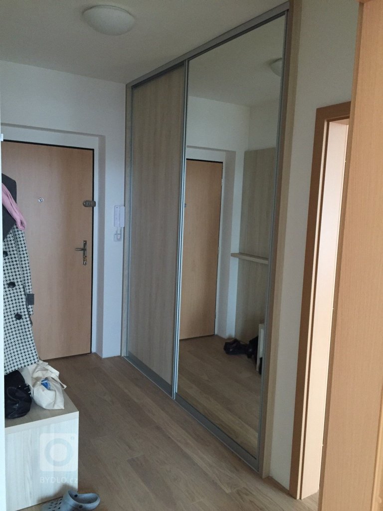 vestavěná skříň do chodby s výsuvnými policem na boty a věšákovou stěnou