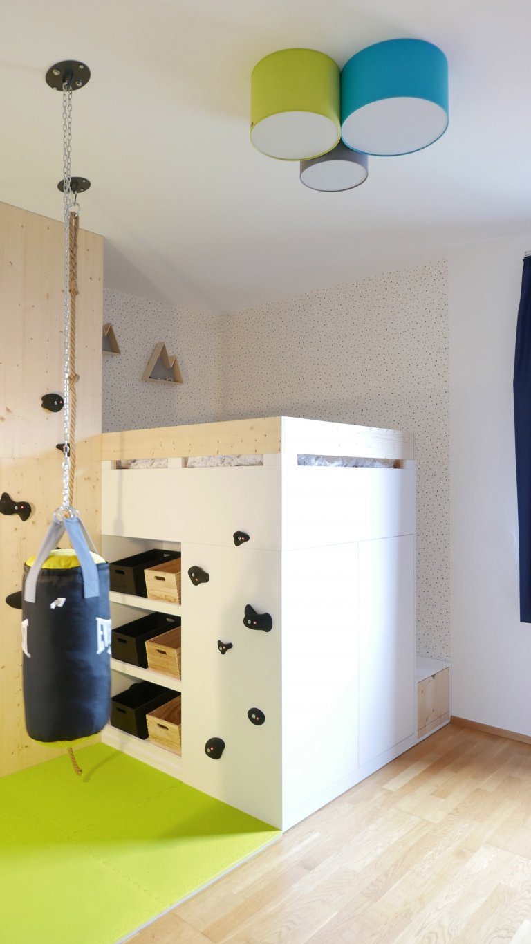 To bylo naší vizí při plánování dětského pokoje pro jednoho akčního a zvídavého chlapce. Tak vznikl prostor s vrcholky hor, lezeckou stěnou, šplhacím lanem, boxovacím pytlem a jednou úplně utajenou skrýší!