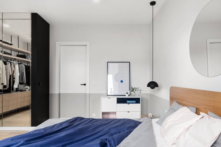 Byt, do kterého dnes nahlédneme, se nachází v Gdańsku, v jednom z nejstarších a největších polských měst. Konkrétně jej najdeme ve Stachurově ulici pojmenované tak po legendárním polském spisovateli a písničkáři Edwardu Stachurovi. A protože se Gdańsk rozkládá přímo při pobřeží Baltského moře, je i v bytě patrný letmý dotek námořnické modři.