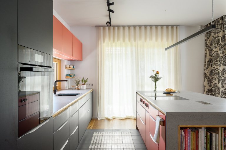 Hlavní roli v čerstvě dokončeném interiéru domu ve Slovinsku hraje dřevo. Představuje hned několik odstínů a kreseb, stará se o dynamiku prostoru a příjemně prohřívá poněkud chladnou bílou výmalbu. Naproti mu přicházejí svěží akcenty lososové barvy, které jsou decentním osvěžením tohoto originálně pojatého interiéru.