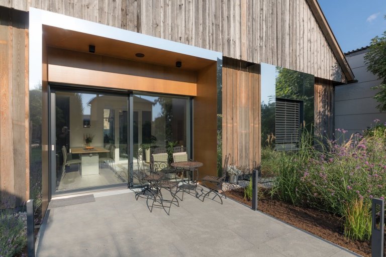 Proměny staré stodoly na obytný dům se chopil architekt Wolfgang Reicht ze studia Wolf Reicht Architects. Respektoval přání majitelky zachovat jak starou strukturu stodoly, tak všechny její rozměry. V původních otvorech domu vznikla okna, nově použité materiály se smísily s původním dřevem.