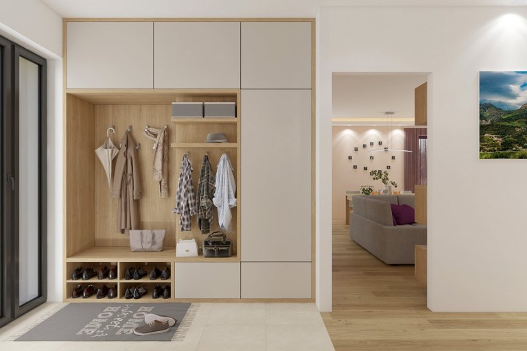 U tohoto návrhu interiéru jsme dodrželi zásadu, že jak místnost, tak celý byt, tvoří jeden celek a vytvořili tak přehledný, světlý a vzdušný byt, který působí uklidňujícím dojmem. Jak se vám naše práce líbí?