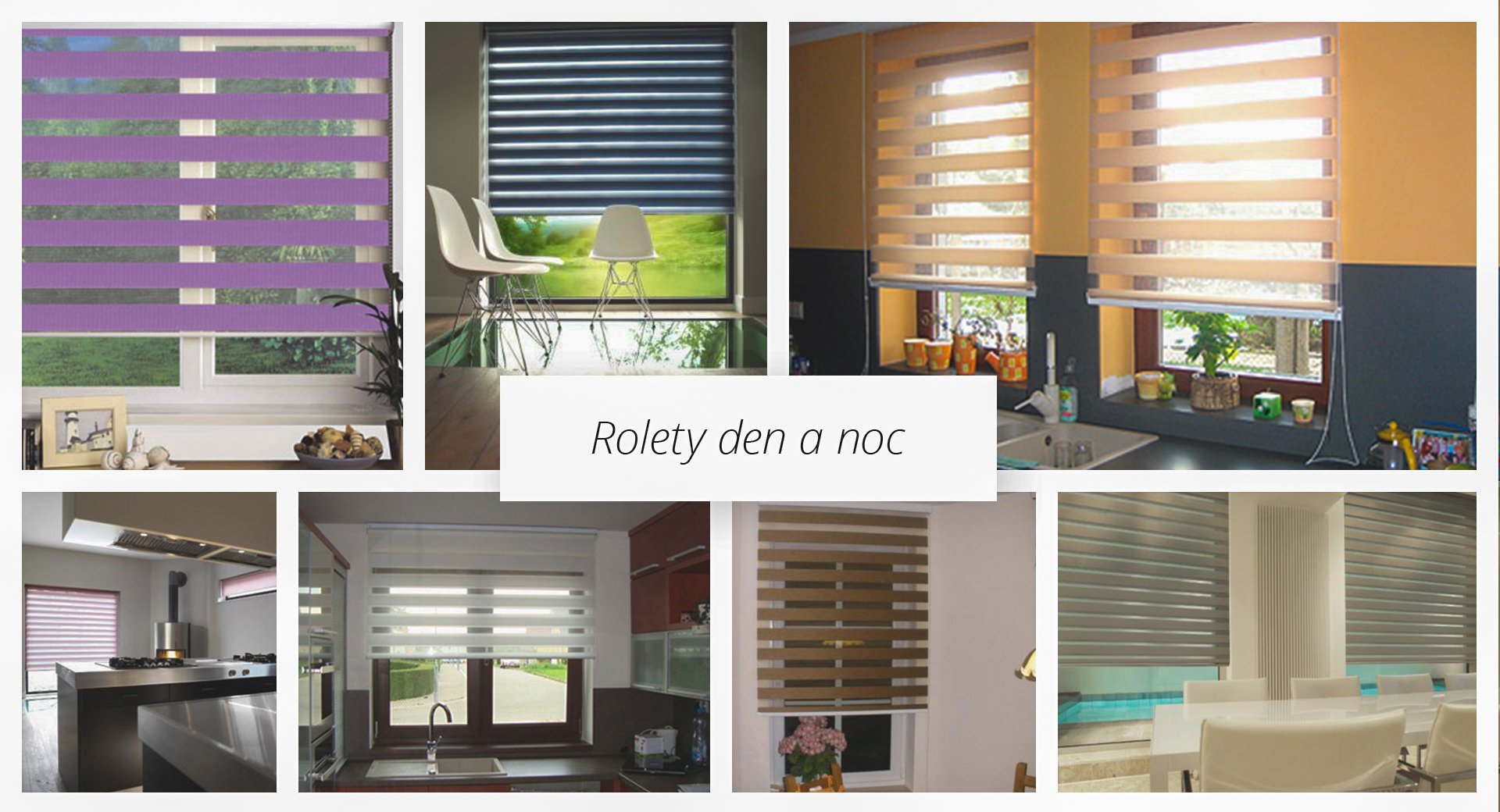 Střídáním dvou látek si můžete regulovat světlo od 50% do 100% zastínění. Rolety DEN/NOC nemají vodící lišty a dají se namontovat na klipy na okno, špaletu, zeď i strop. Zastíní plochu do velikosti 5,5 m². Často jsou vidět v kuchyních, ložnicích a dětských pokojích. Pokud byste tento typ zastínění potřebovali pro menší okna, doporučujeme zvolit rolety DEN/NOC mini.