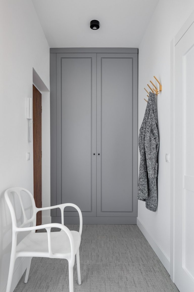 Byt o rozloze 45 m2 získal na přitažlivosti především díky přeměně malých pokojů, ze kterých se po zbourání nebo přemístění zdí stal příjemně vzdušný a otevřený prostor. S novým uspořádáním tak došlo i k vytvoření pohodlné předsíně, šatního a pracovního prostoru, k rozšíření koupelny a také k velice důležitému propojení kuchyně s obývacím pokojem. Z prostorově a opticky stísněného bytu tedy nakonec vznikl příjemný interiér bohatý na prostor, světlo a v neposlední řadě i invenci designérů.
